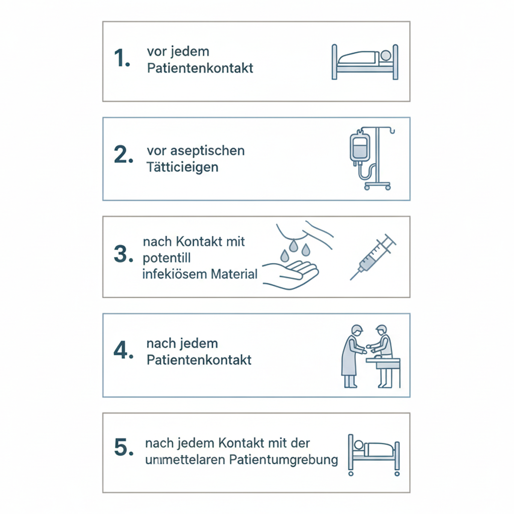 - Vor Patientenkontakt, z. B. vor der Vitalzeichenkontrolle